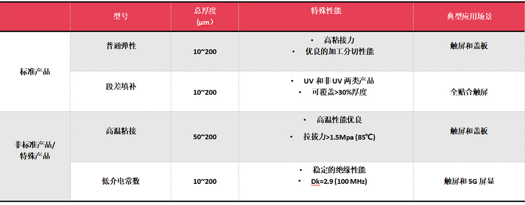 應(yīng)用闡述:OGS屏幕保護(hù),顯示器面板等各種光學(xué)膜片以及觸摸屏 ITO 玻璃的粘接