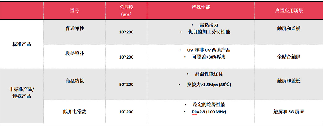 應用闡述:OGS屏幕保護,顯示器面板等各種光學膜片以及觸摸屏 ITO 玻璃的粘接