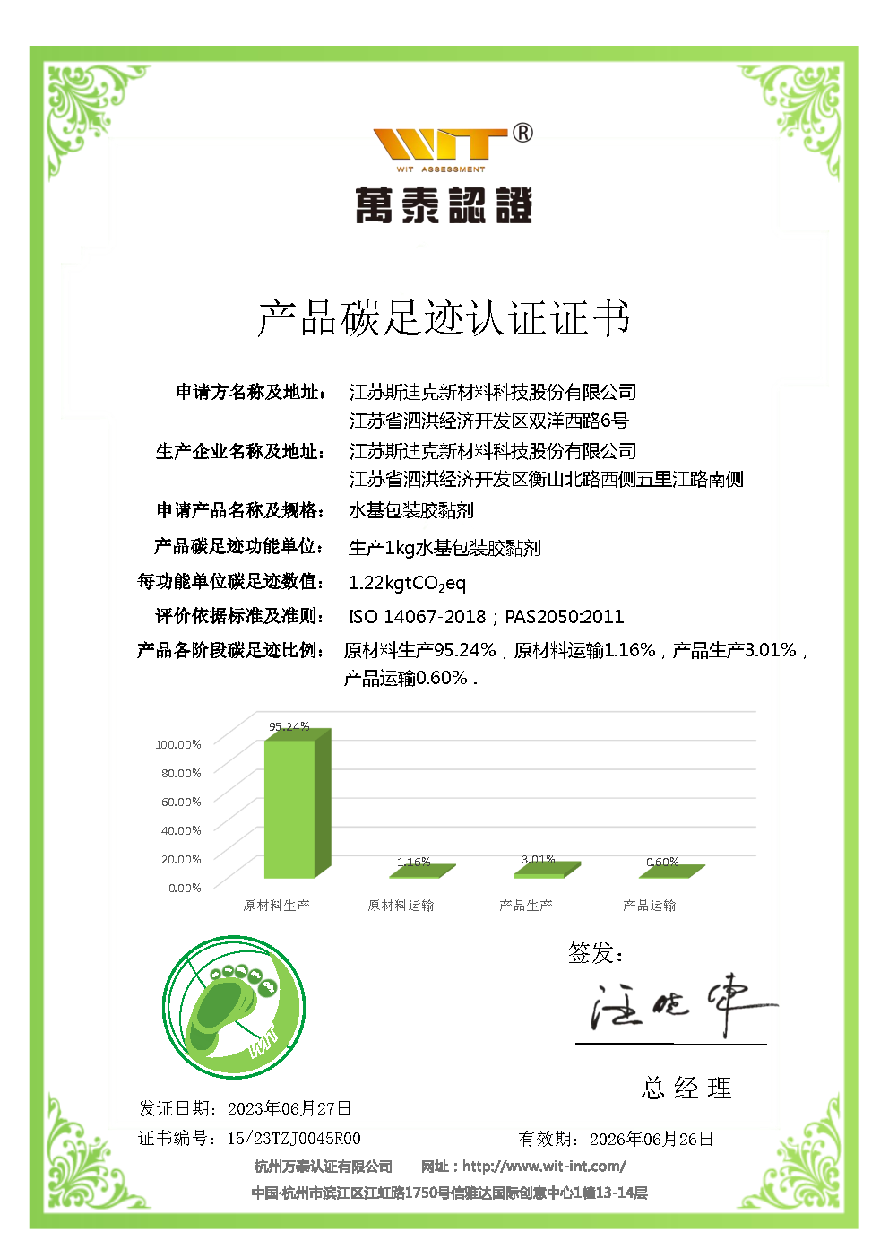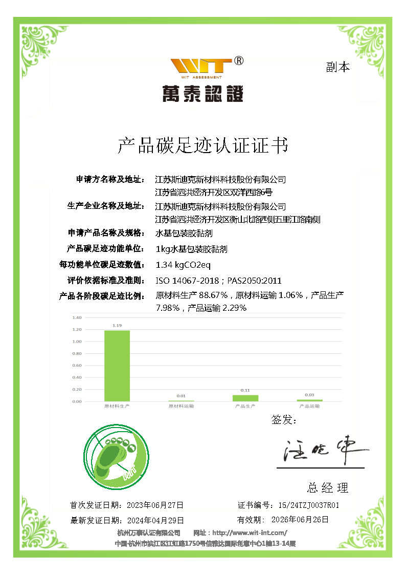 斯迪克獲《溫室氣體排放核查聲明》證書